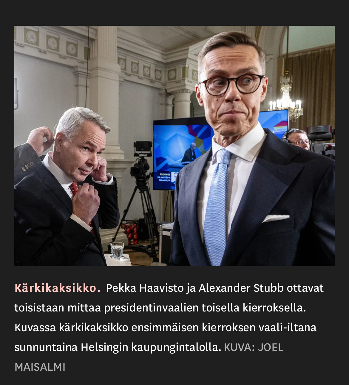 The other election in Finland last weekend was for the President, and a run-off between two white liberal men. I detected something in the way certain men talked about Alex Stubb having a “British Lawyer Wife” – why? Because she sounds like a trophy wife for cosmopolitan businessmen? Or to draw a subtle comparison to Haavisto and his Ecuadorean hairdresser husband? What are we supposed to be noticing here?